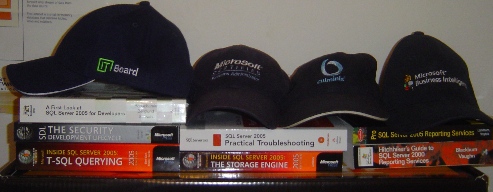 Over the years from IT events or from various other sources I gather a lot of caps. Yesterday at a user group meeting I received a new one. The following 4 caps marks various stages of my involvement in IT: